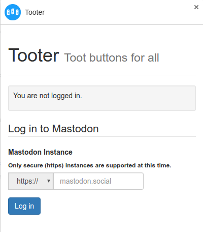 1. Instalamos Tooter desde la chrome web store y en configuración añadimos la instancia que estamos utilizando en Mastodon, en mi caso.. mastodon.social